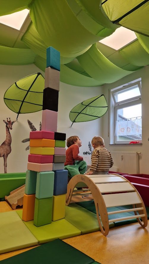 Unsere Räumlichkeiten sind kindgerecht gestaltet und bieten eine geschützte Umgebung, in der sich die Kleinen unbeschwert entfalten können. Durch sichere Spielmaterialien, regelmäßige Sicherheitskontrollen und eine liebevolle Begleitung schaffen wir einen Raum, in dem sich die Kinder frei bewegen und selbständig ihre Welt erkunden können – stets unter achtsamer Aufsicht. So fördern wir ein Umfeld, das Vertrauen schafft und den natürlichen Entdeckungsdrang unterstützt.